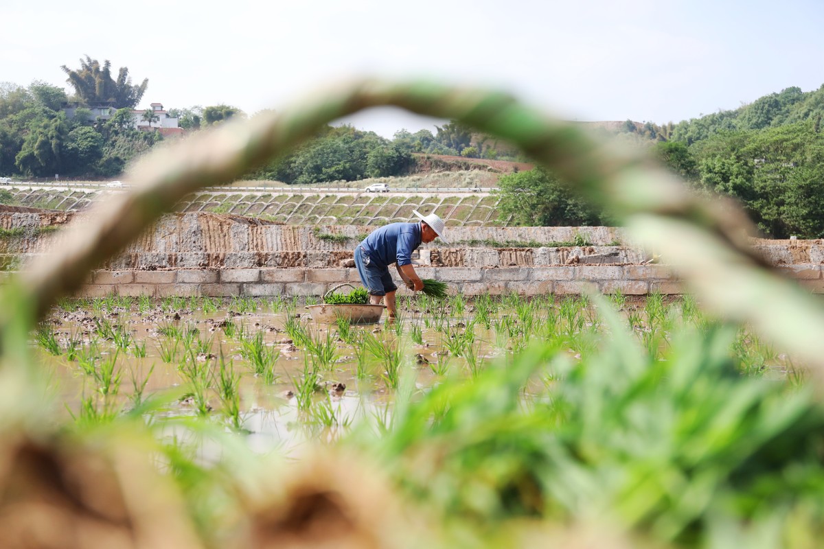 放水、摆放秧苗、插秧……5月9日,泸县太伏镇林桥村的水田里,一片忙碌。镇水利站的工作人员来到田间地头,与插秧的村民拉起了“家常”,回访响水河石河堰加固后的春耕用水及秧苗栽种情况。