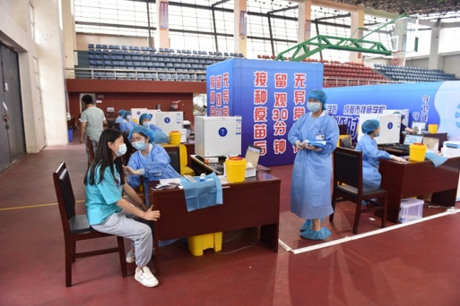 根据郫都区卫健局等部门工作安排,为保障新冠病毒疫苗接种工作顺利开展,真正做到“应接尽接”,5月10日上午,成都工贸职业技术学院在体育馆开展为期3天的集中接种新冠疫苗工作,接种对象为前期已报名自愿接种的教职工和学生,接种人数达4300余名。