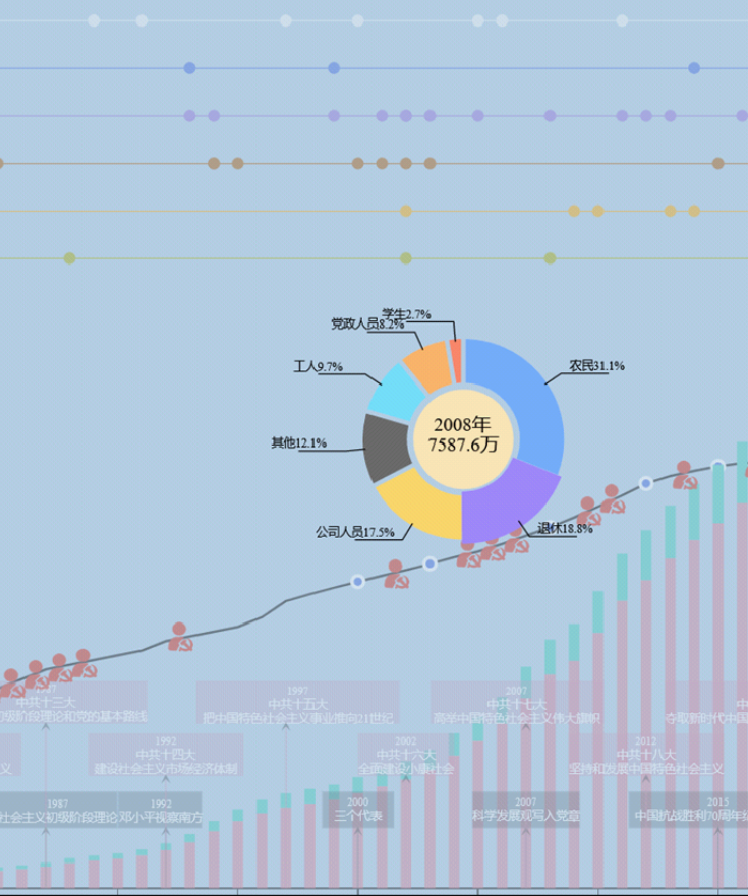 不同历史阶段党员结构分布与重大事件呈现