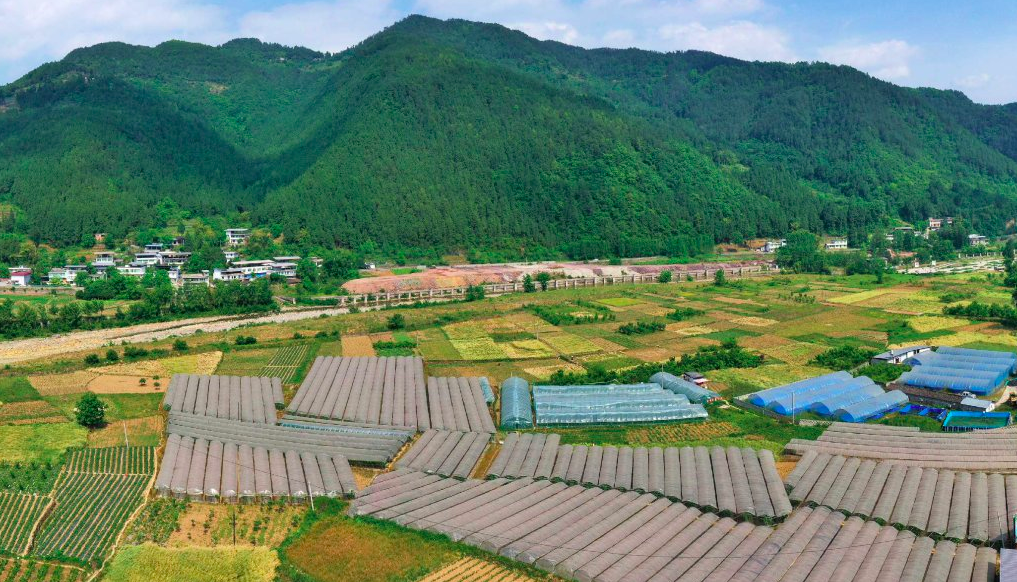5月7日,巴中市南江县公山镇流坝村,绿意盎然的田园与错落的民居、秀丽的山峦相映成趣。肖定怀 摄(视觉四川)