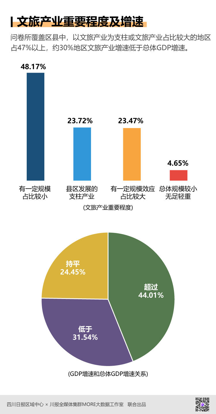 “长得快,但块头小。”有近五成县区市表示,当地文旅产业虽有一定规模,占比却较小,而在这些区县里,又有不到三成的区县文旅产业增速超过了地方GDP增速。