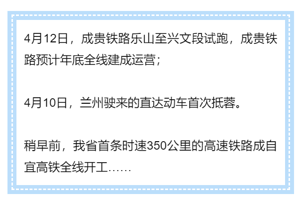 空前的建设力度,“蜀道难”不复存在。截至去年底,四川以逾32万公里公路线路、逾7000公里高速公路、约5000公里铁路线路的交通建设总规模,领先国内多数省(区、市)。
