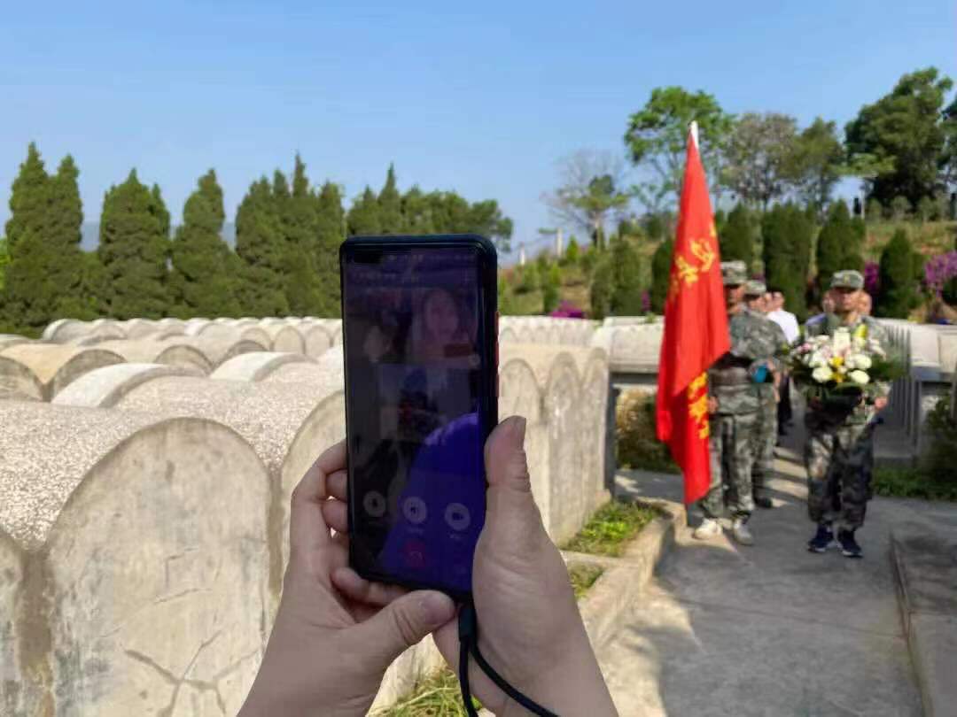 通过多方努力和信息比对,最终确认,吕文魁烈士牺牲63年后,找到了自己的亲人。4月10日上午9点,在盐边县退役军人事务局的组织下,30余名志愿服务队员为烈士扫墓,一旁的工作人员举着手机,与2270多公里外的张小俊和家人视频连线。