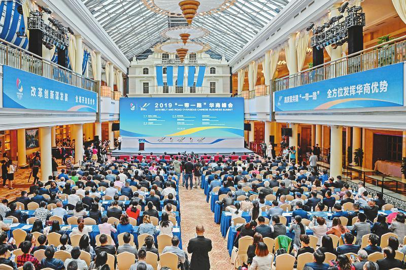 4 月 16 日,2019中外知名企业四川行活动在成都启幕。此次活动将举办1场主体活动、6场专项活动及市州系列专题活动。图为2019“一带一路”华商峰会现场。