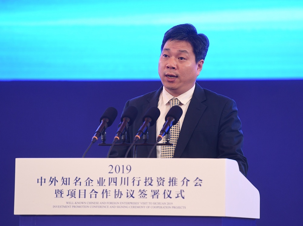 4月17日,在2019中外知名企业四川行投资推介会暨项目合作协议签署仪式上,摩根大通中国首席经济学家朱海斌现场围绕中国的未来可持续增长及四川的作用作了交流发言。