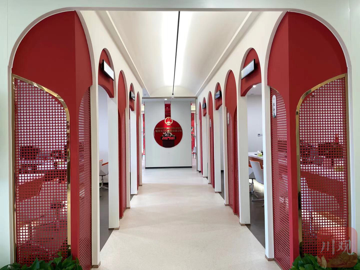 一楼设有展厅和婚姻家庭辅导室,集传统婚俗文化展示、新人互动、开展宣传活动等功能为一体。