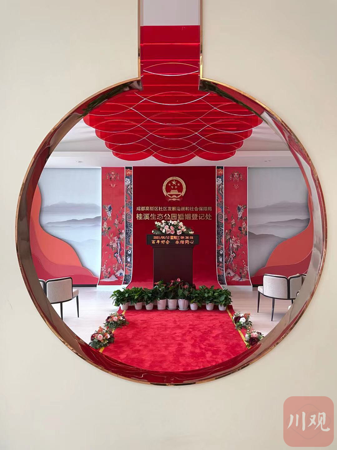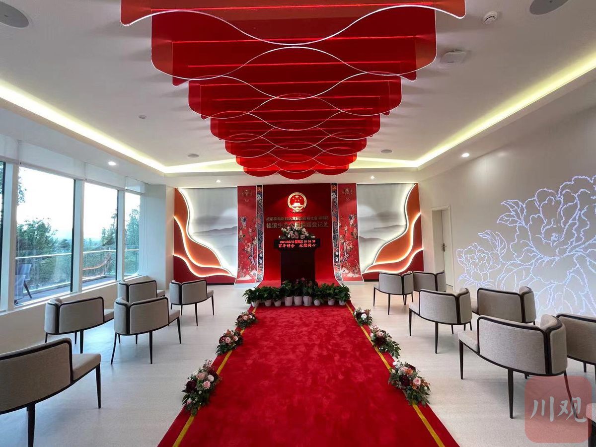 据悉,该中心从5月6日开始试运行,目前共计办理20对新人。该中心将于5月20日正式运行,采取预约登记方式,目前天府市民云“成都婚事通”平台和四川省民政厅门户网站婚姻登记预约栏目开放预约通道,共计开放240个预约名额,想在桂溪生态公园“扯证”的新人们抓紧了!