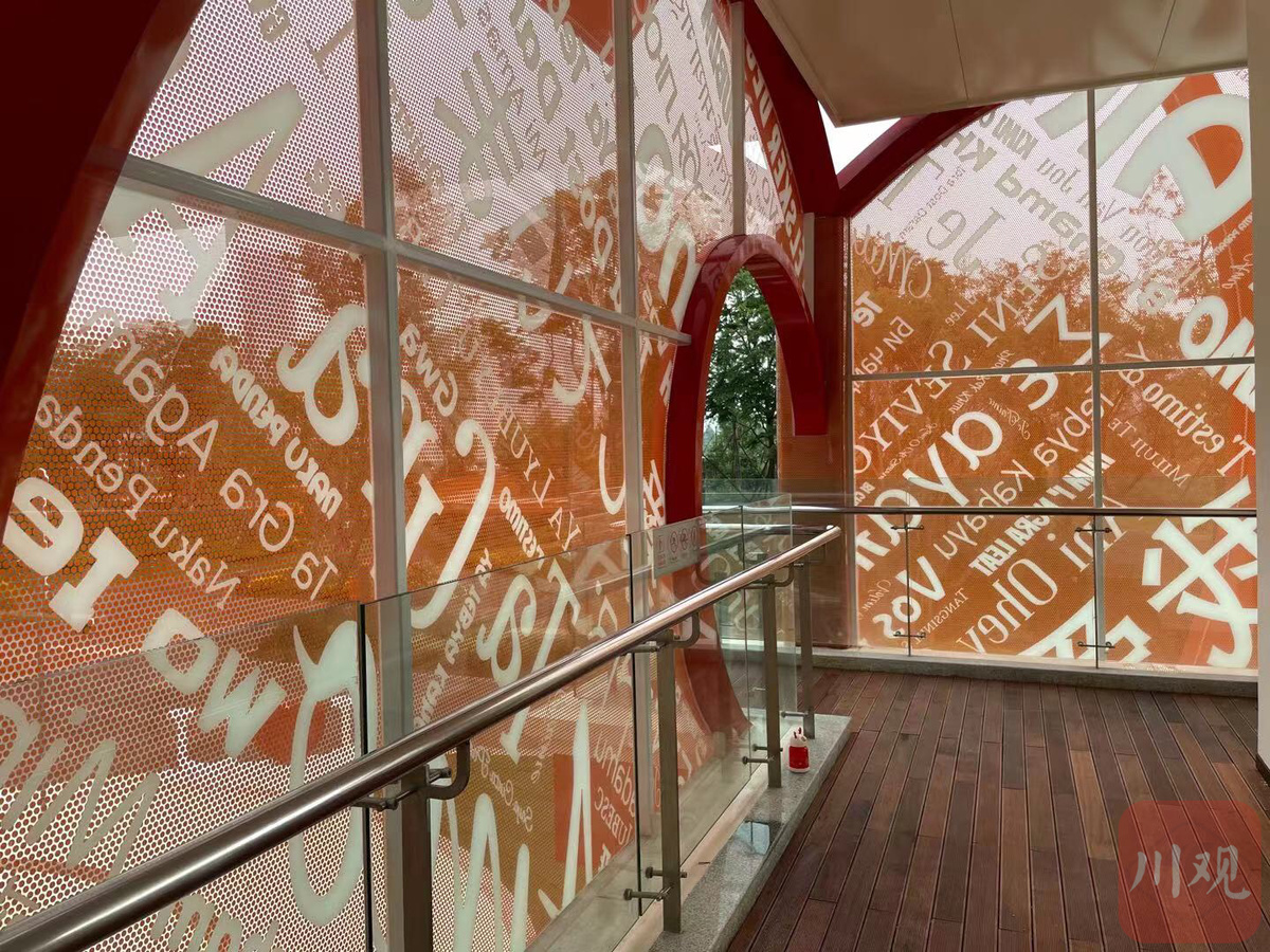 在中心外,映入眼帘的是一处大型红色双心“爱墙”雕塑,印有各国“我爱你”字样,象征“心心相印”的美好寓意,旁边是两处心形花园,其中点缀着“爱的秋千”“爱情名言阶梯”等婚恋文化小场景。