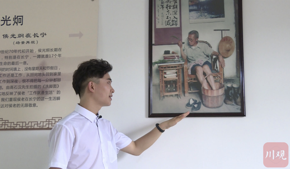 普通的竹椅、茶几、木桶,还有一双沾满泥浆的筒靴、一双普通得不能再普通的老棉鞋、一位老农正在洗脚……悬挂在西南大学的这幅照片就是今天档案故事的主角——侯光炯。