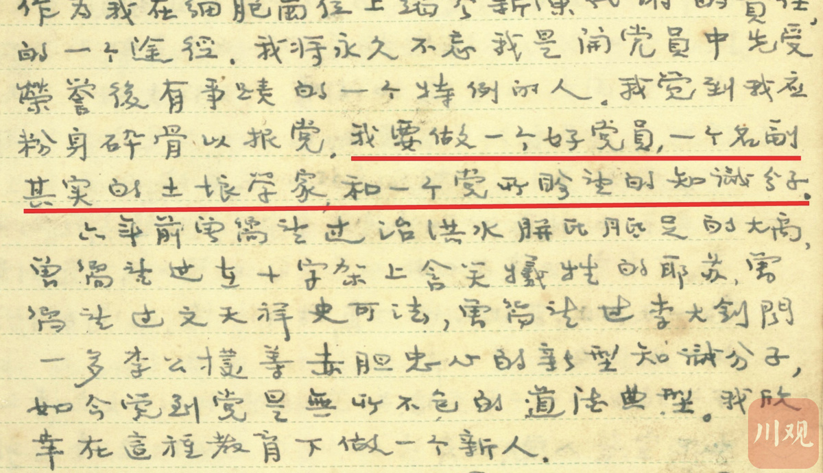 “今天是我的新生命开始的纪念日,从今天起,我把我的智慧、力量和生命都交给党……我要做一个好党员,一个名副其实的土壤学家和一个党所盼望的知识分子。”在侯光炯纪念馆,收藏着他的部分日记,这是1956年2月28日,侯光炯入党第一天的日记。