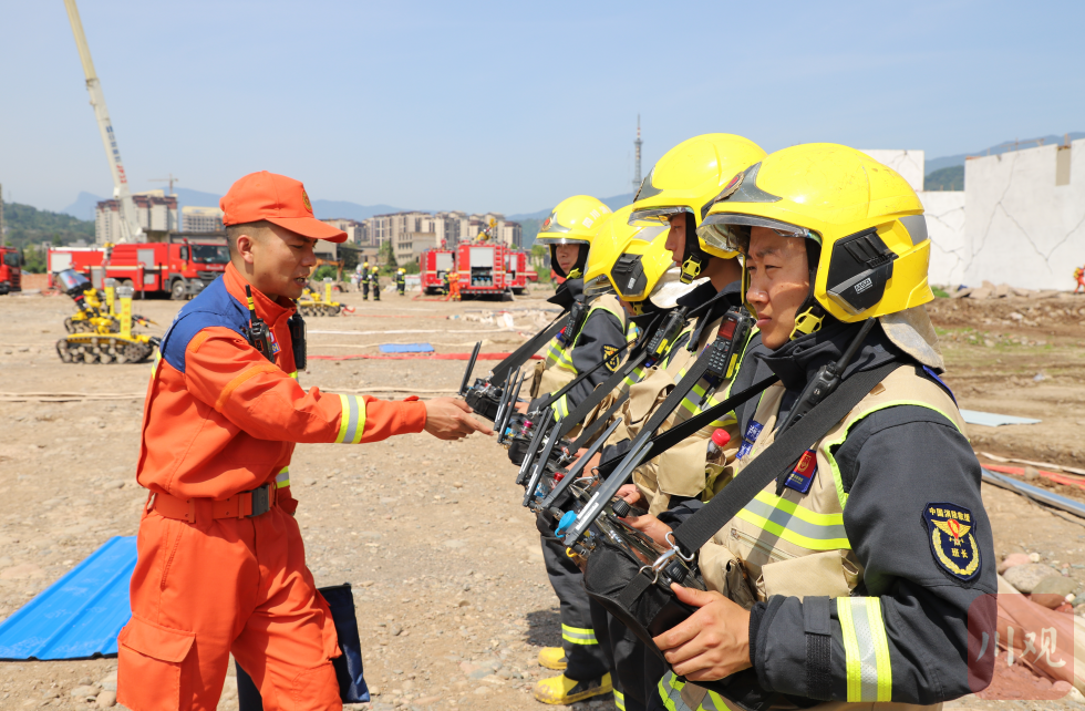 当天上午,国务院抗震救灾指挥部办公室、应急管理部、四川省人民政府将联合举行“应急使命·2021”抗震救灾演习,这是应急管理部成立三年来首次举行的大规模实兵检验性演习,主演习场在雅安市雨城区。主演习场中,泸州市消防救援支队机器人大队主要承担危险化学品泄漏爆炸事故灭火救援,共有10操作手和10台对应的机器人在演练现场灭火。