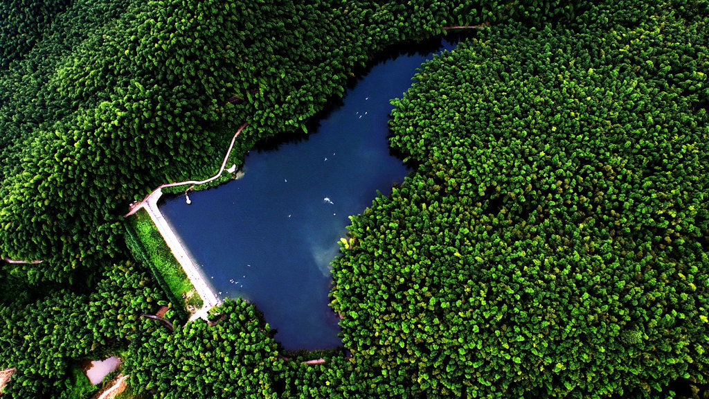 宜宾市兴文县僰王山景区,竹林环抱的寿山湖。 杨建 摄