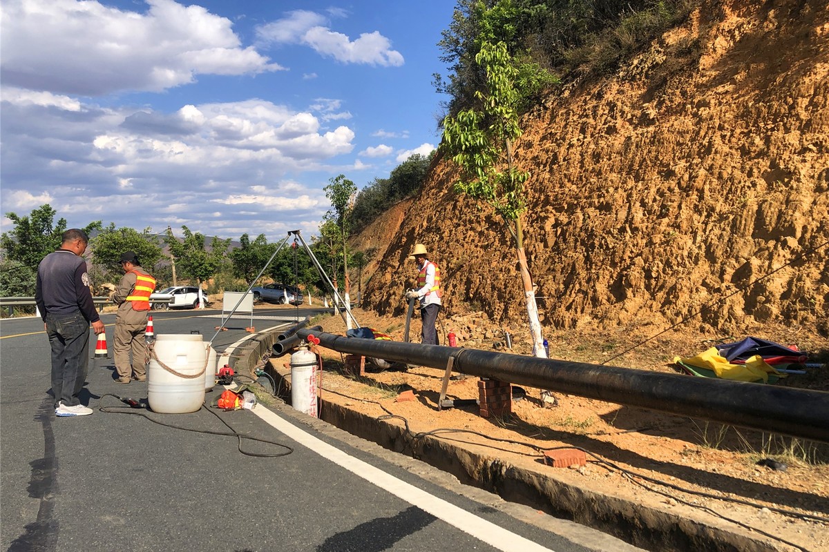 中午时分,仁和区大龙潭乡拉鲊村次格地组,尽管户外气温已超35℃,重点抗旱应急项目——“大龙潭乡东山坡提灌站”建设现场,工人们仍埋头焊接管道。