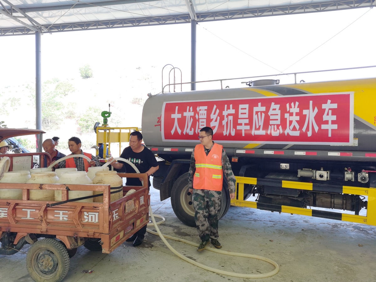 “快点快点,水送来了!”5月13日下午,见一辆大罐车朝村里驶来,攀枝花市仁和区大龙潭乡坝塘组村民胡泽兴一声吆喝,拎起水桶就往家门外跑。当天,载有近1.3万升的大龙潭乡抗旱应急送水车奔忙于乡间公路,为饮水困难的村民送水。
