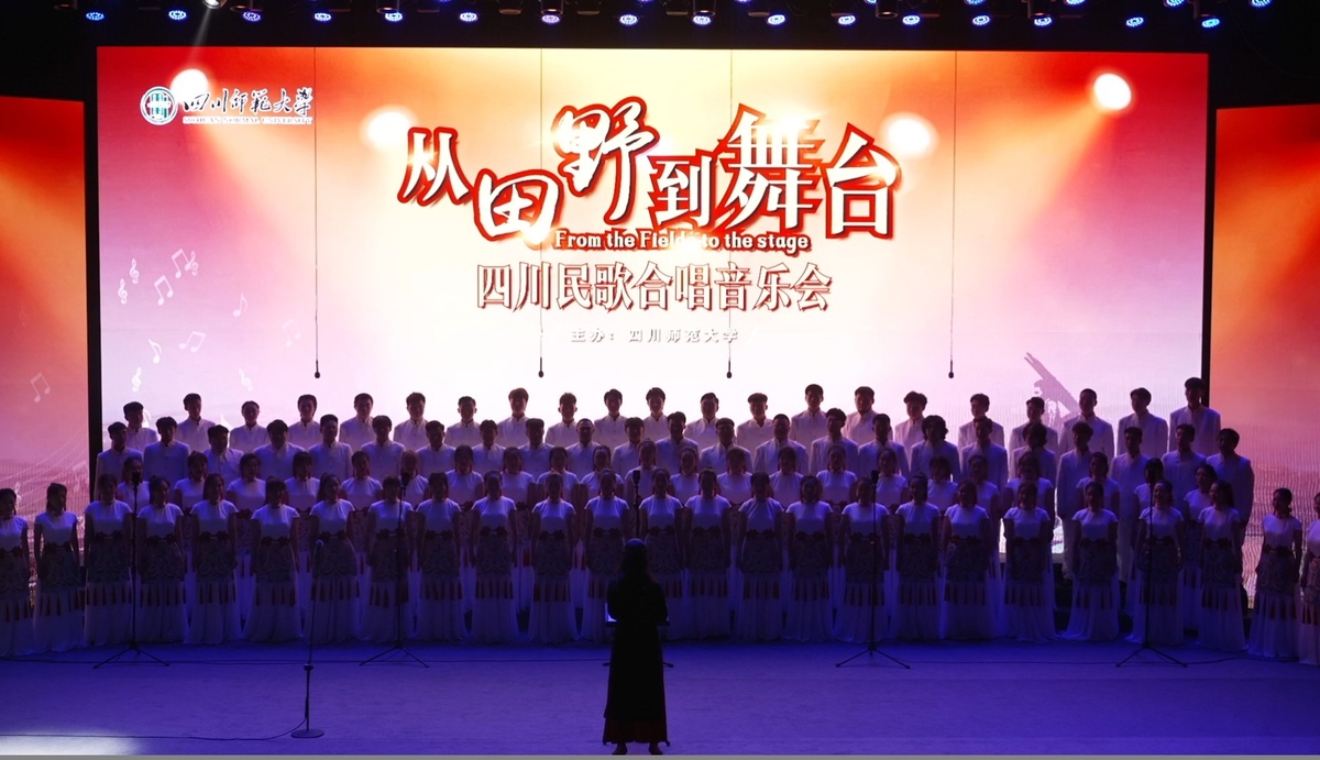 《绣荷包》《金沙江号子》《月儿落西下》《圆圆舞曲》《阿惹妞》……5月15日晚,由四川师范大学主办,四川师范大学音乐学院、文学院、民歌研究所承办、四川师范大学电子出版社协办的“从田野到舞台—四川民歌合唱音乐会”在四川大剧院举行,此次音乐会在微信、微博、抖音、哔哩哔哩(bilibili)上全程直播。