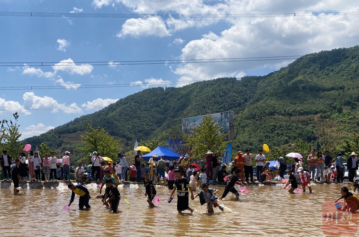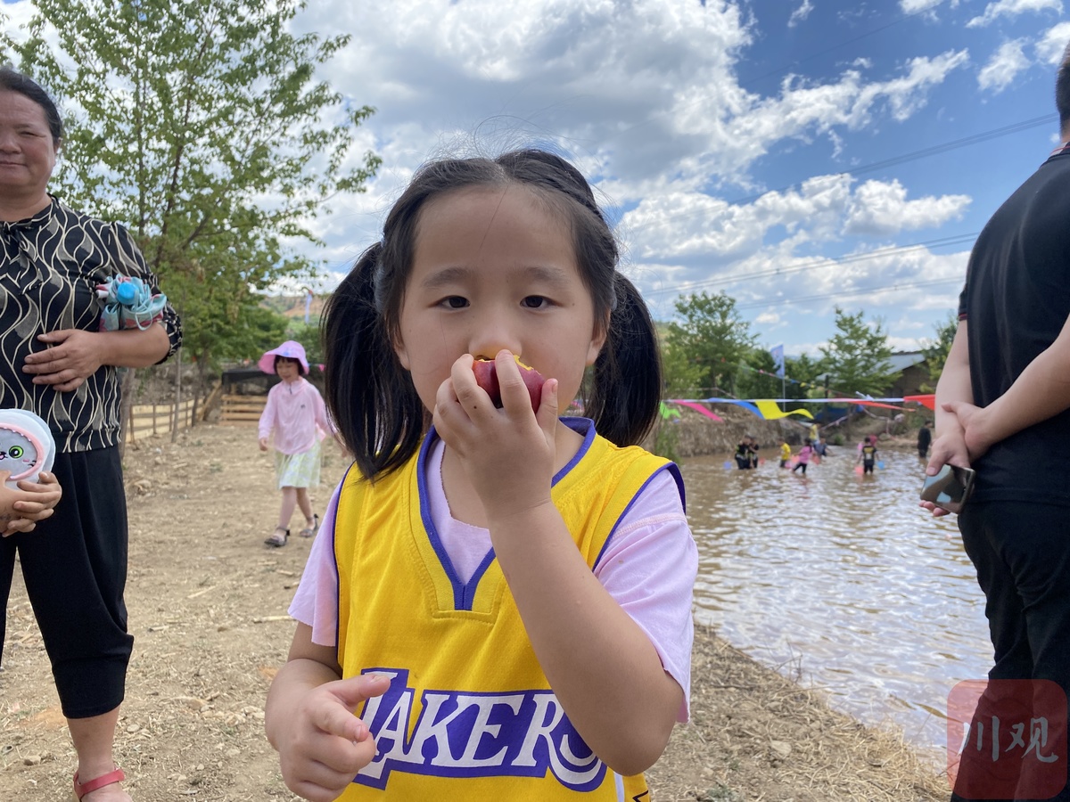 除了采摘,米易县麻陇彝族乡将从“好吃、好看、好玩”三个方面,精心准备了多个活动项目。“小猪快跑”儿童赛现场,孩子们轻甩小木棍,和小猪“搭档”合力向终点跑去;套鸡大赛则吸引了不少成人,手拿各色塑料圈跃跃欲试;摸鱼池里,一片嬉笑声……