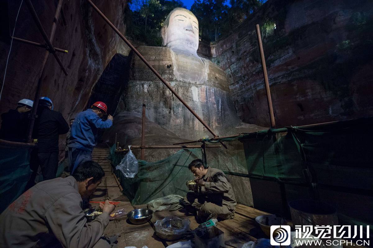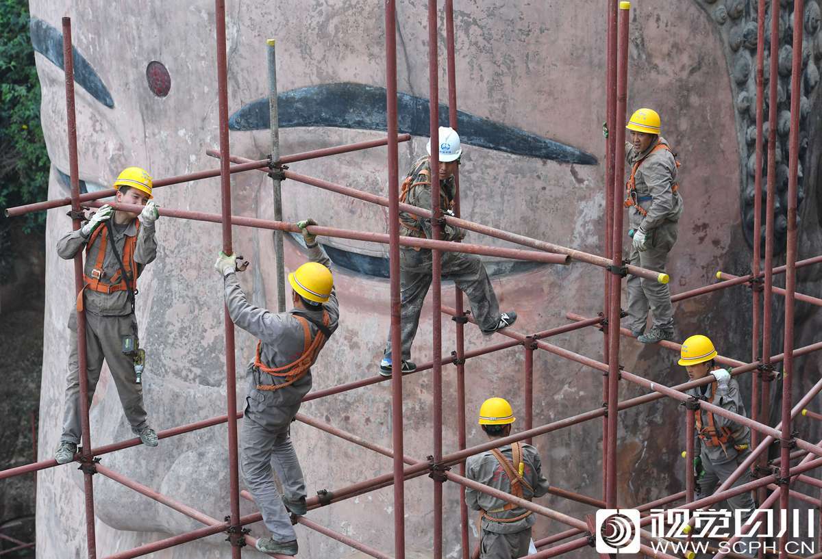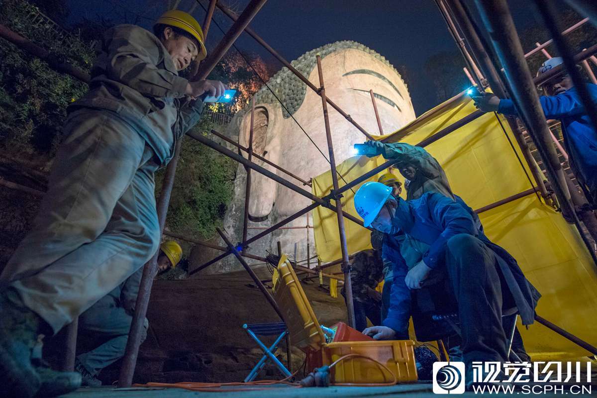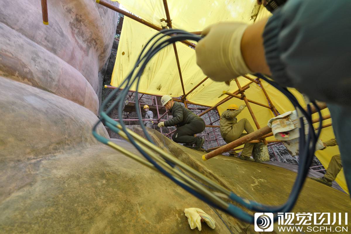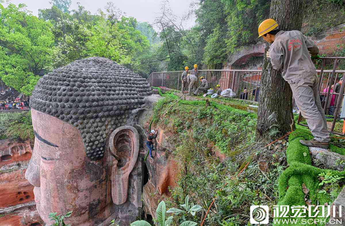 体检, 对大佛进行全方位的检查; 美容,进行局部的修复和美化; 监测,安装设备,长时间检测大佛的身体状况。经过景区管委会的同意,本报记者花了2个月的时间独家近距离记录了大佛保护工程的全过程。