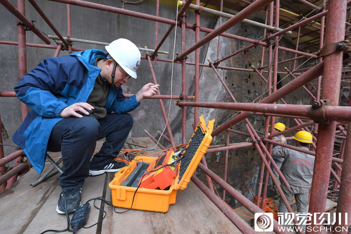 ☛ 2019年3月17日,中铁西北科学研究院有限公司文保中心的副主任孙博(左)在检测探头的数据稳定性。
