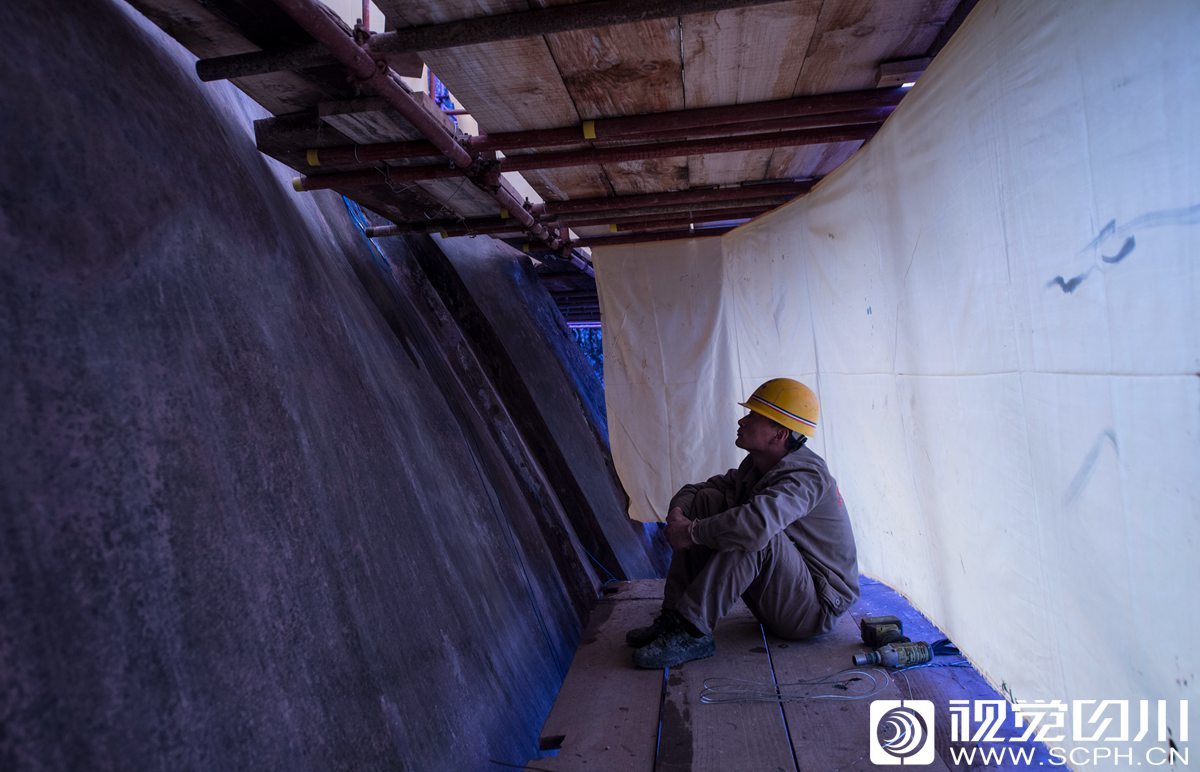 ☛ 2019年3月17日,一名技术人员在搭建的栈道上休息,他每天要从头部到脚步走4个来回。