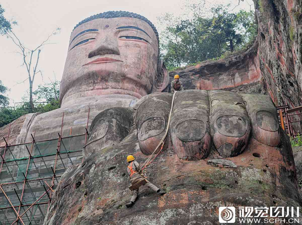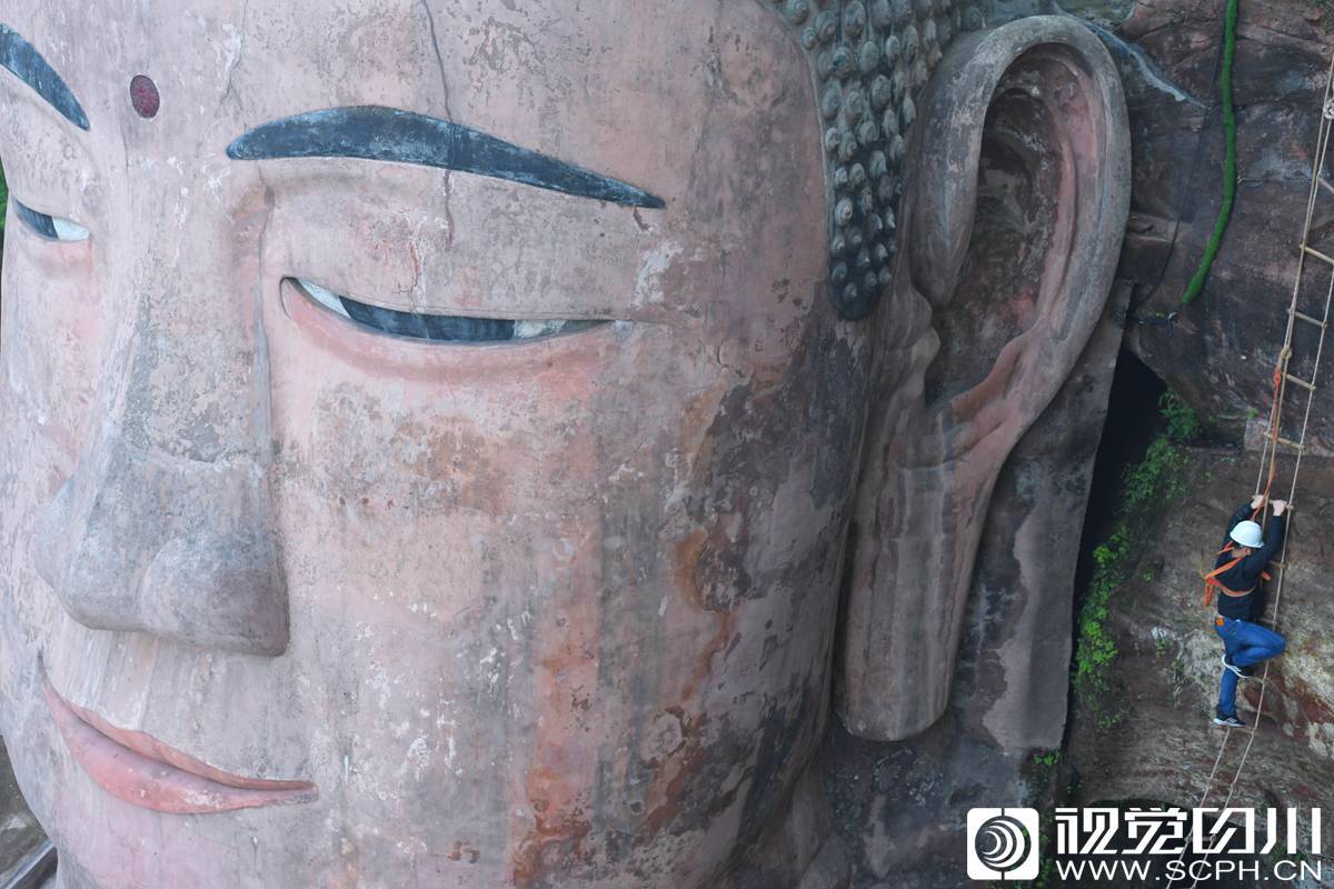 保护“千岁大佛”刻不容缓!2018年10月,乐山大佛胸腹部开裂残损区域前期研究及勘测设计项目正式启动,这是新世纪以来针对大佛的最大规模保护工程。
