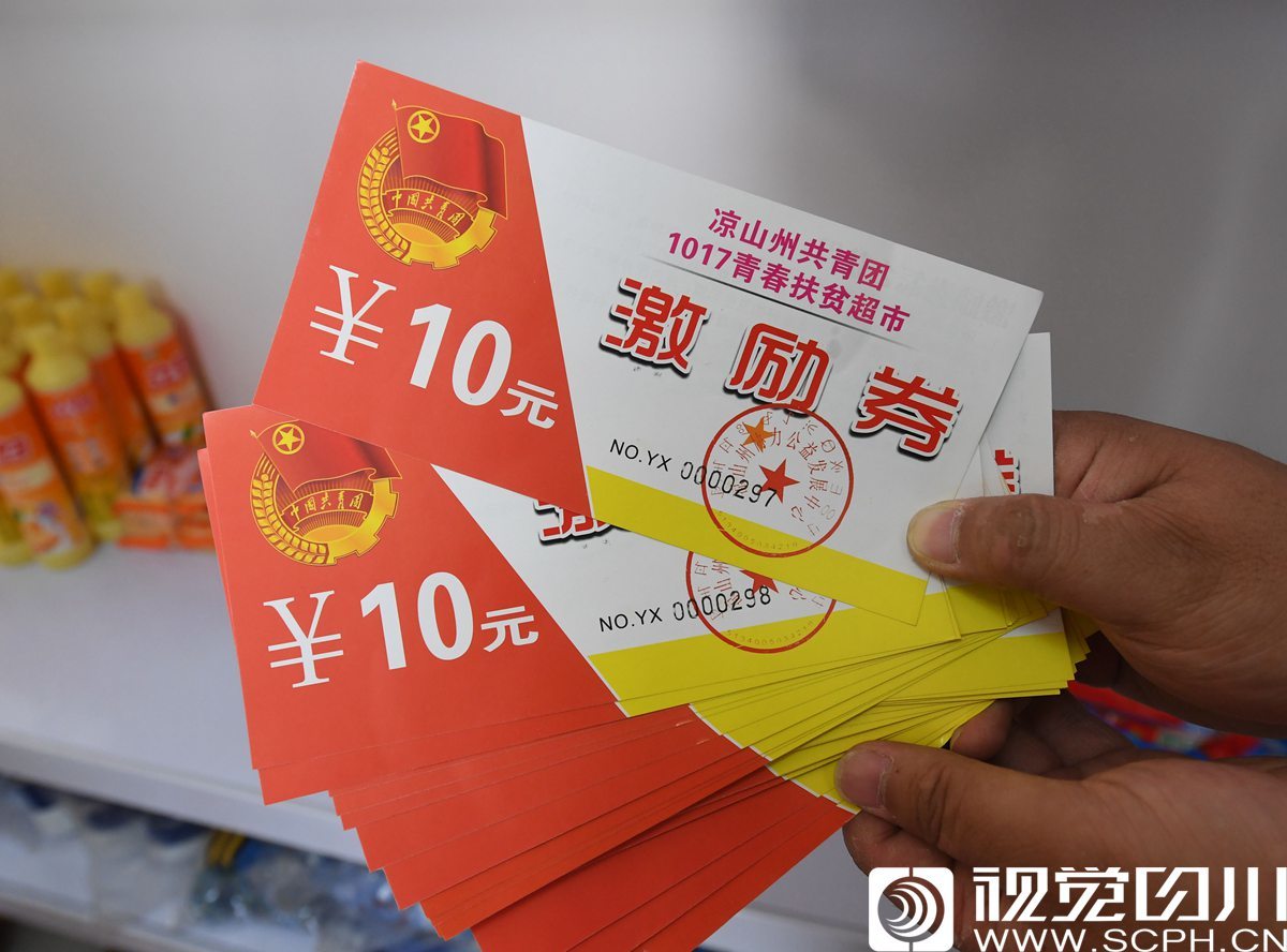☛ 村里办起了青春扶贫超市,村民们通过文明礼仪积分获得激励券,换取日用品。