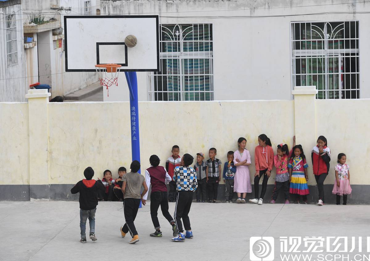 ☛ 放学了,孩子们在文化广场打篮球。