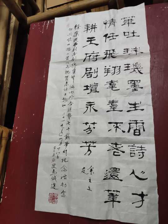 待徐棻忙完,两位老友握手相拥,马识途送上了自己给徐棻的赠诗:“笔吐珠玑墨生香,诗心才情任飞翔,耄耋不老还笔耕,天府剧坛永芬芳。”马识途说,徐棻和自己是老朋友了,他称赞徐棻不仅是一位戏剧家,其文学修养也很不错,“看见她身体好,我很开心。我已经105岁,他和我差了10岁左右,希望她健康,祝她今天的活动成功!”