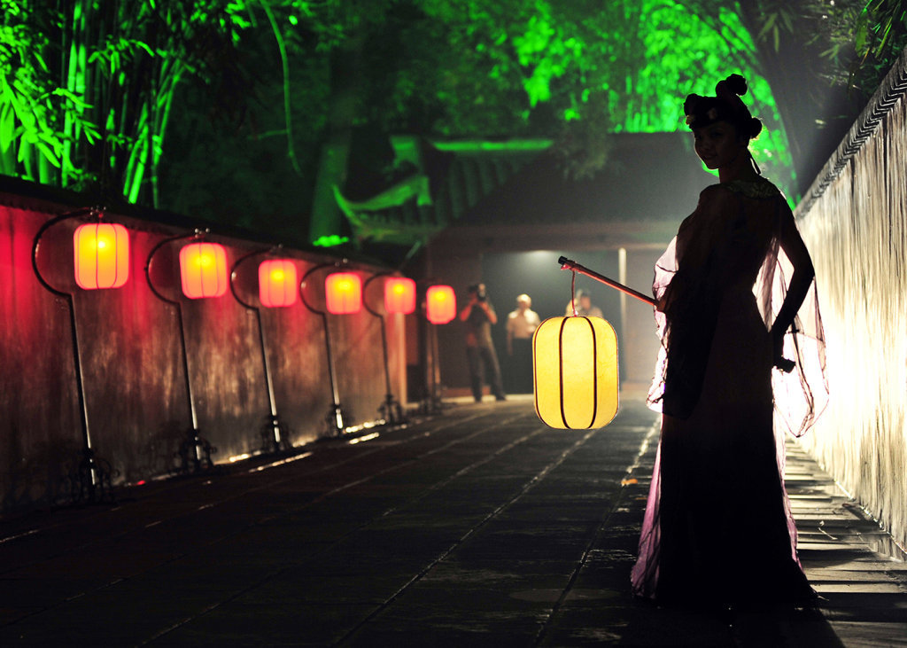 夜游杜甫草堂。 川报观察记者 谭曦 摄