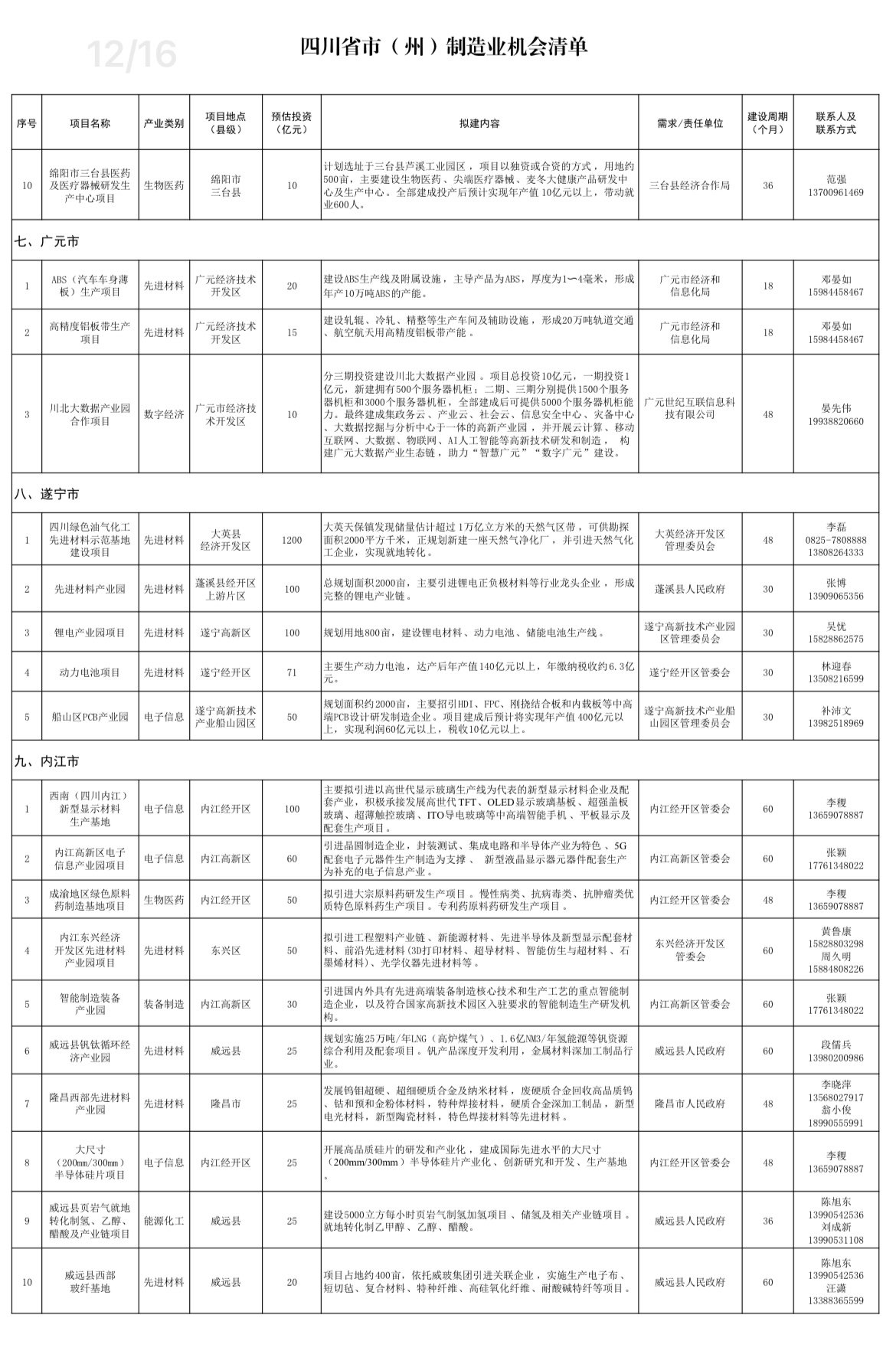 推介会上,四川省经信厅印制了《四川省制造业机会清单》。清单针对广东省先进制造业发展优势,在电子信息、高端装备、生物医药、新能源、大数据及服务型制造等领域,组织筛选了200个制造业项目投资机会清单,累计投资金额达1.2万亿元。
