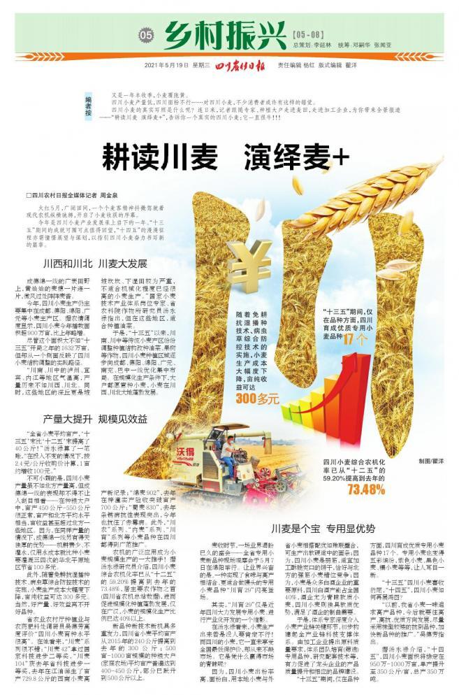 今日,四川农村日报用四个版“耕读川麦 演绎麦+”
