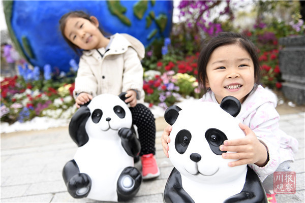在中华园艺展示区里,大部分省都把省名用大字的形式,展现在自己园区的门口显眼位置。四川没有这么做,但游客却能一眼认出这是四川园。因为一只坐在地球上的可爱的大熊猫,被直接当成我们的“招牌”。