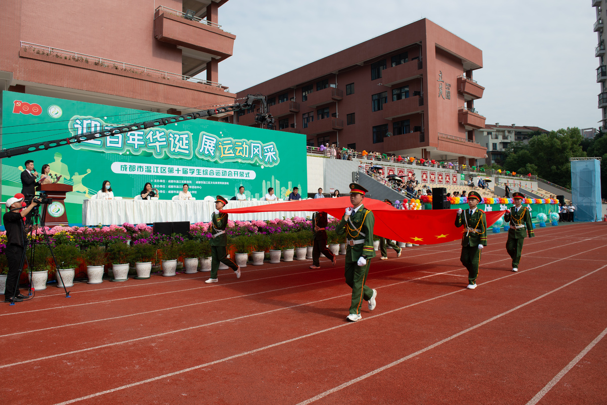 5月18日,由成都温江区教育局与温江区文体旅局联合主办的“迎百年华诞·展运动风采”成都市温江区第十届学生综合运动会开幕式在鹏程小学举行。温江区教育局、区文体旅局、区关工委、团区委、区妇联等部门,以及全区各中小学、幼儿园师生共计3000余人参加了活动。