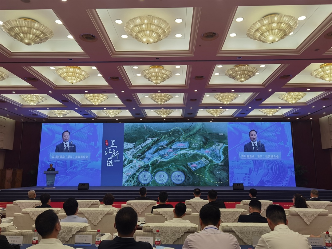 5月19日,四川制造业广东(浙江)投资推介会在浙江杭州美丽的西子湖畔举行。会上,四川制造业作了专题推介,四大省级新区“当家人”轮番上场路演,长三角区域知名企业及商协会负责人等300余人参与会议。