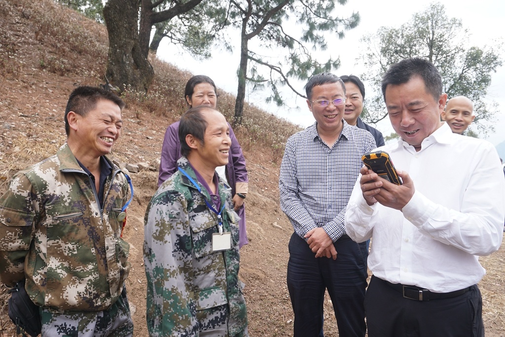 2019年4月3日,王飚在白坡彝族乡检查森林防火工作,在巡山护林员指导下使用现代化森林防火报警器