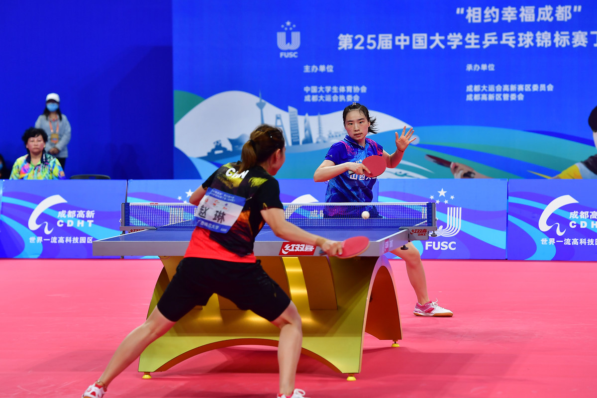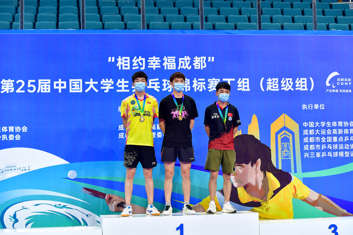 5月21日,“相约幸福成都”第25届中国大学生乒乓球锦标赛丁组(超级组)决赛在成都高新区体育中心落下帷幕,男子单人与女子单人同时开战。经过一个上午的精彩对决,来自华东理工大学的王晓彤和武汉大学的习胜分别摘得女子单打和男子单打金牌。