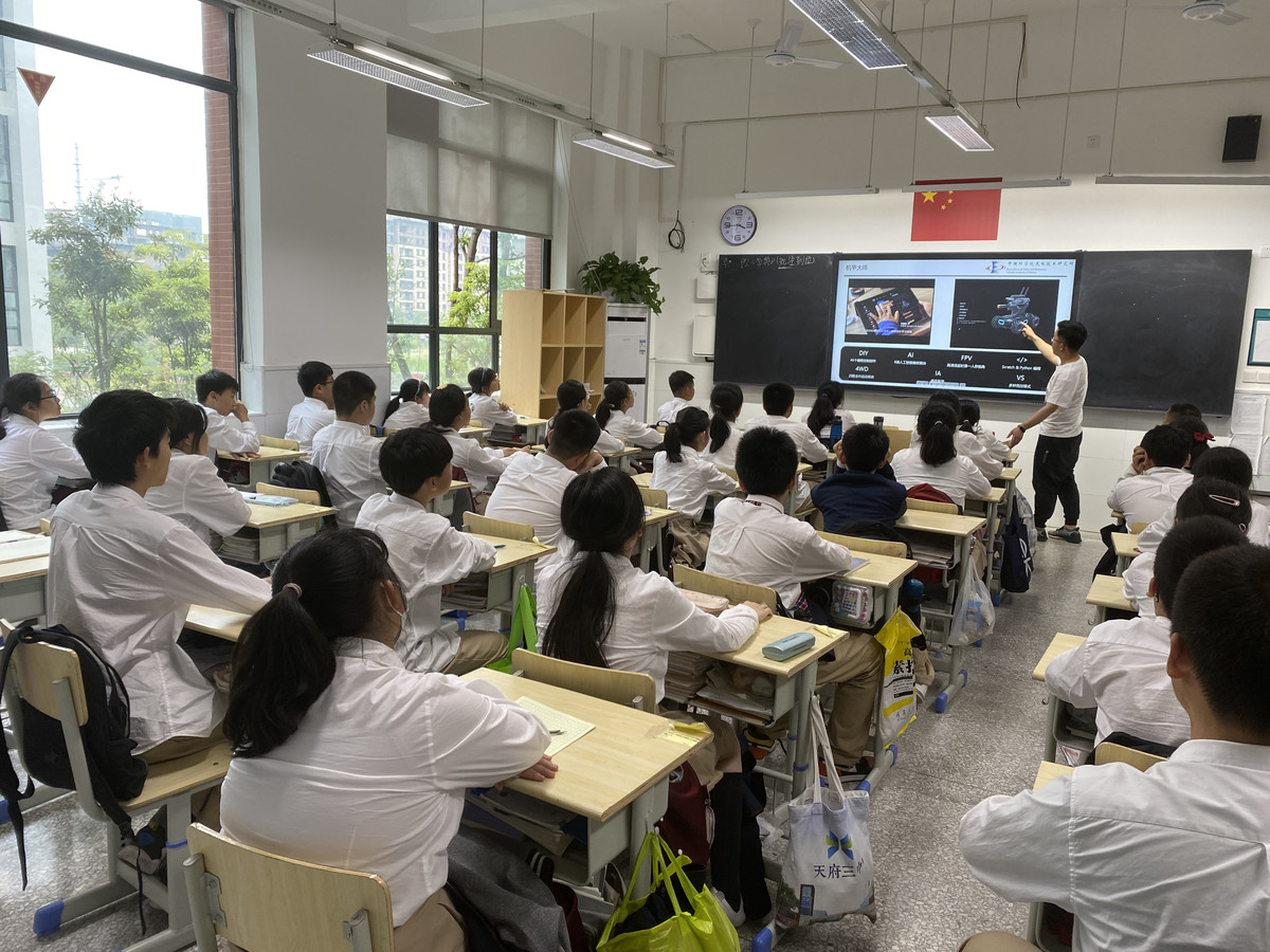 当天,包括《天文望远镜探究》《智能化社会与机器人》《山地灾害与无人机》、《电动汽车的心脏-锂离子电池》等10余个科学教育课程同步展开,学生们和科研人员面对面沟通交流,同时还有线上院士讲座,探索宇宙的奥秘。