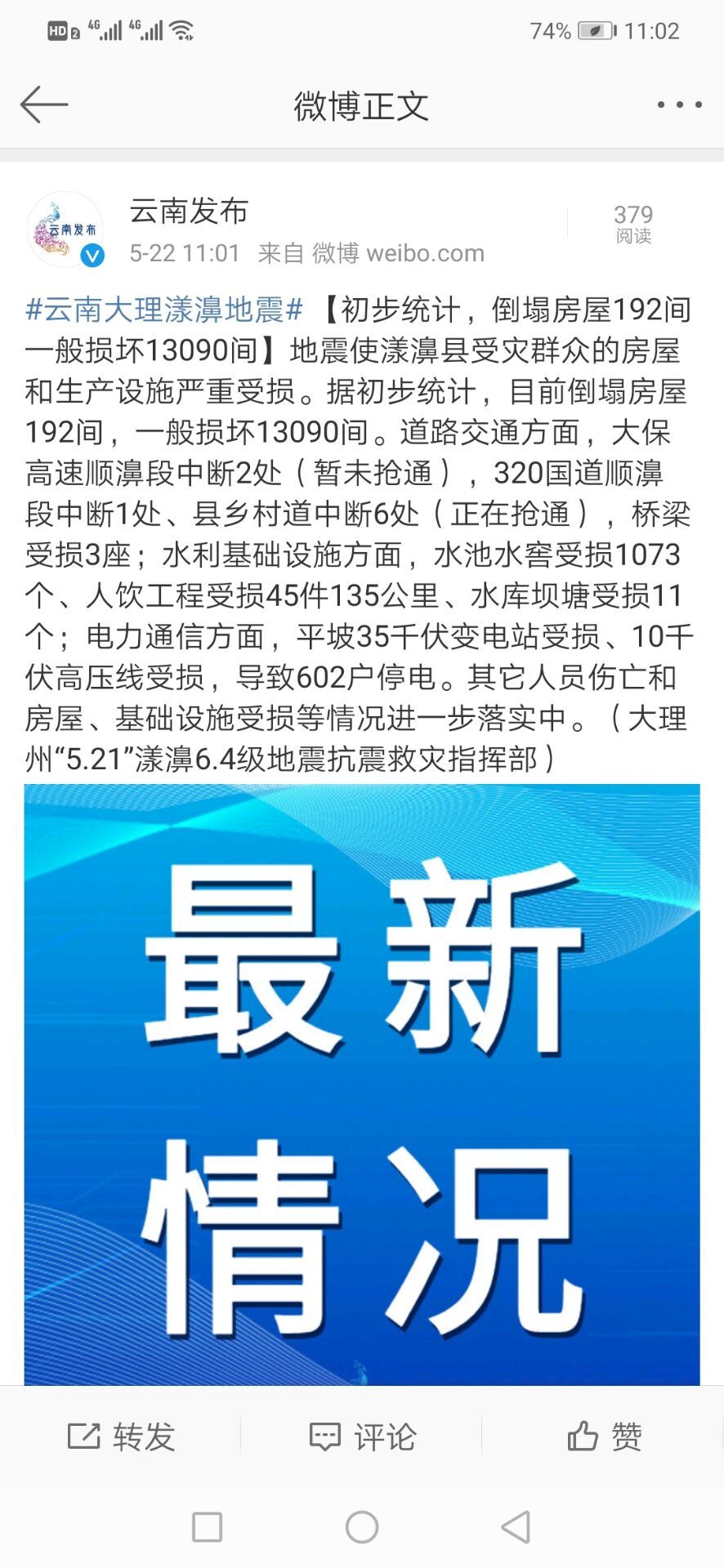 云南大理州漾濞县发生5.6级地震 网友:昆明、丽江、攀枝花等地有震感