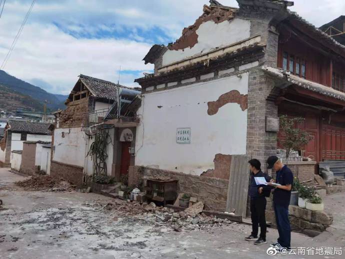 云南省地震局灾害评估工作小组已到达苍山西镇下街村委会核实灾情。