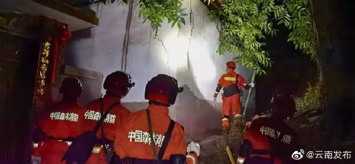 云南省大理白族自治州漾濞县消防救援大队教导员杨静带领指战员到达苍山西镇秀岭村,发现部分房屋倒塌和瓦片掉落,经紧急搜救未发现人员被困,已紧急疏散村民。(中国消防官方微博)
