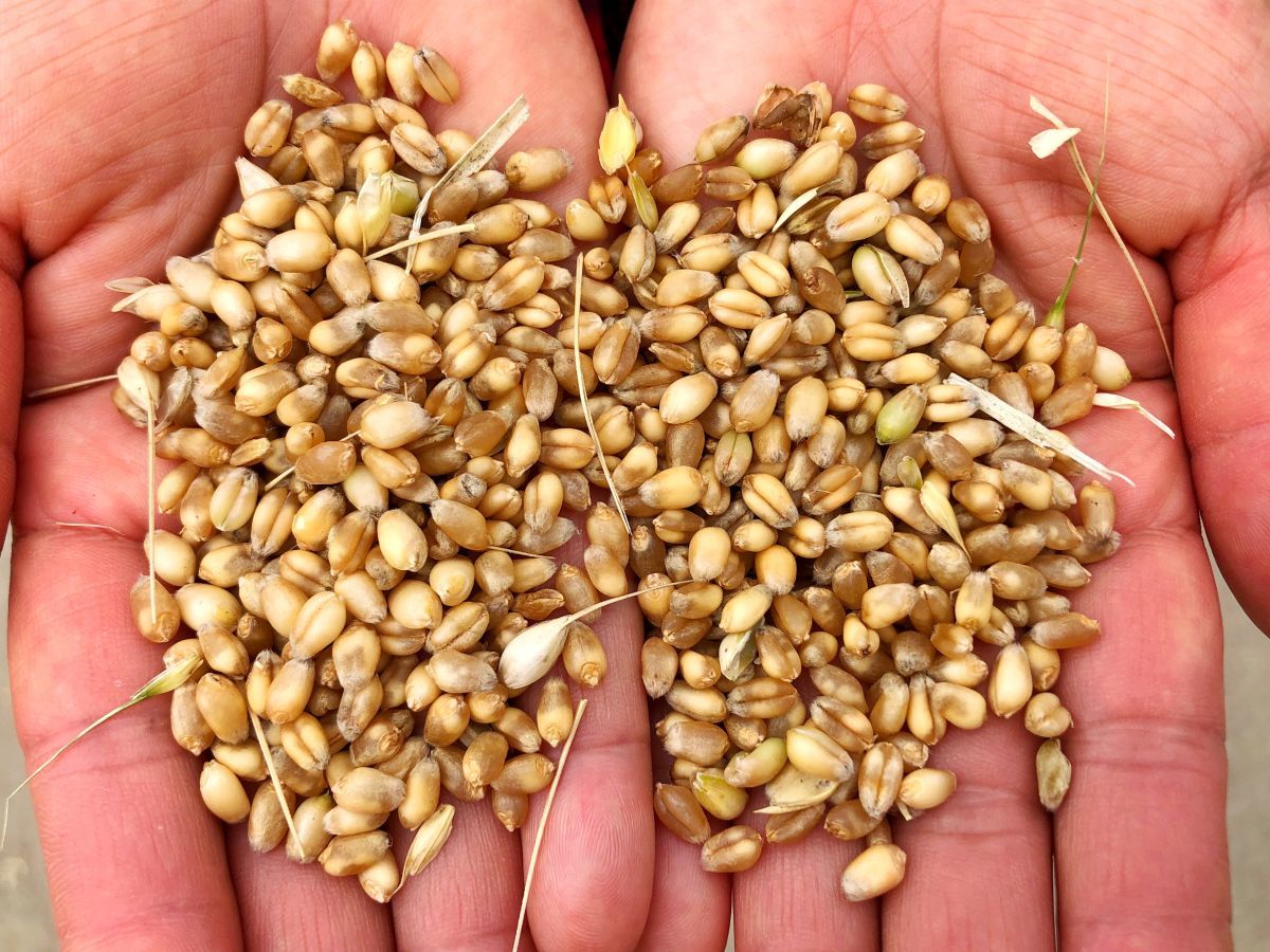 小麦籽粒有多种颜色,而在生产中,往往以红粒品种为主。而在测产现场,捧出一把成熟的“蜀麦133”麦粒,颗颗圆润饱满、大小均匀、色泽明亮,呈现出更为柔和的象牙白色。