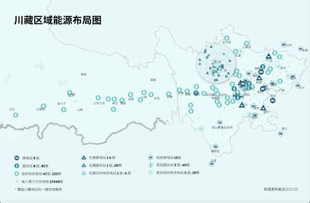 今年,蔚来将持续布局,努力让加电比加油更方便。川藏区域将新建约30座蔚来换电站,数座超充站和目的地充电站,不仅让城区用户更加便捷,还能让城际出行,省际出行更轻松。