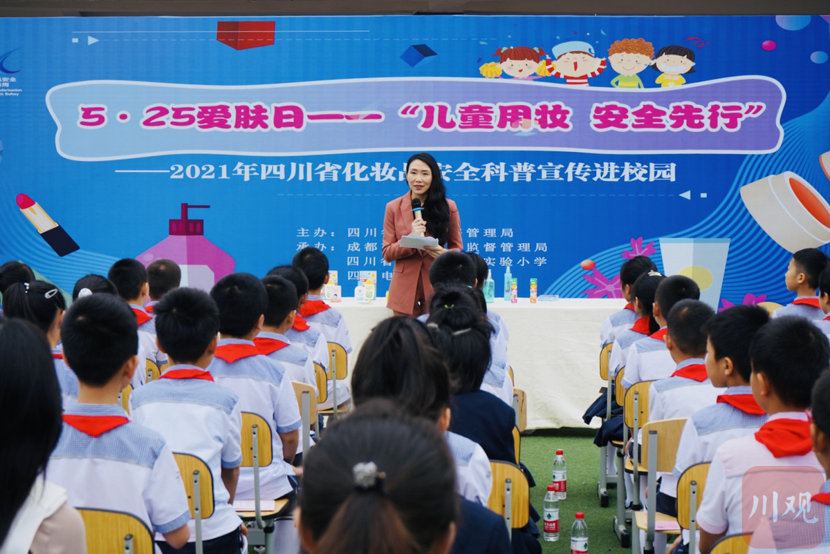 5月25日,成都高新区实验小学内操场上,数十名学生和家长们上了堂“特别的一课”——教家长们如何正确选择儿童化妆品、孩子们如何正确使用化妆品。