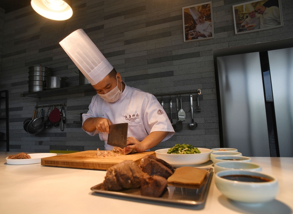 “有些菜非要在厨房里悄悄做,是因为怕人把技术学了去,川菜则不用,做法随便看,功夫都在厨师的手上,光看肯定学不会。”夫妻肺片非遗传承人王钦锐对此颇有心得。单说刀工,牛头皮、牛心、牛舌、牛肚本就不是易切的食材,还要片得薄如蝉翼,大小均匀,不下苦工练习很难做到。“厨师也是匠人,看似简单的菜也要多花功夫,才能做得好。”