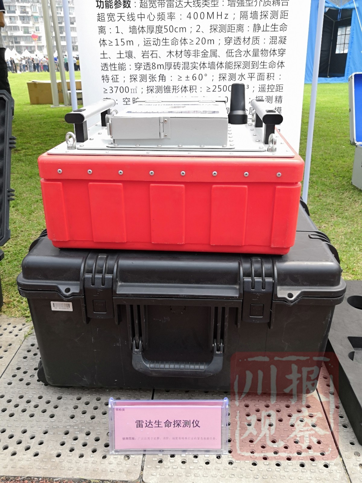既有登高平台消防车、组合式喷泵冲锋舟、移动式照明车、金属切割机等大家熟悉的应急装备,更有六翼无人机、音视频生命探测仪、雷达生命探测仪、侦察机器人、消防灭火机器人等一批“硬核”高科技的救援应急设备。