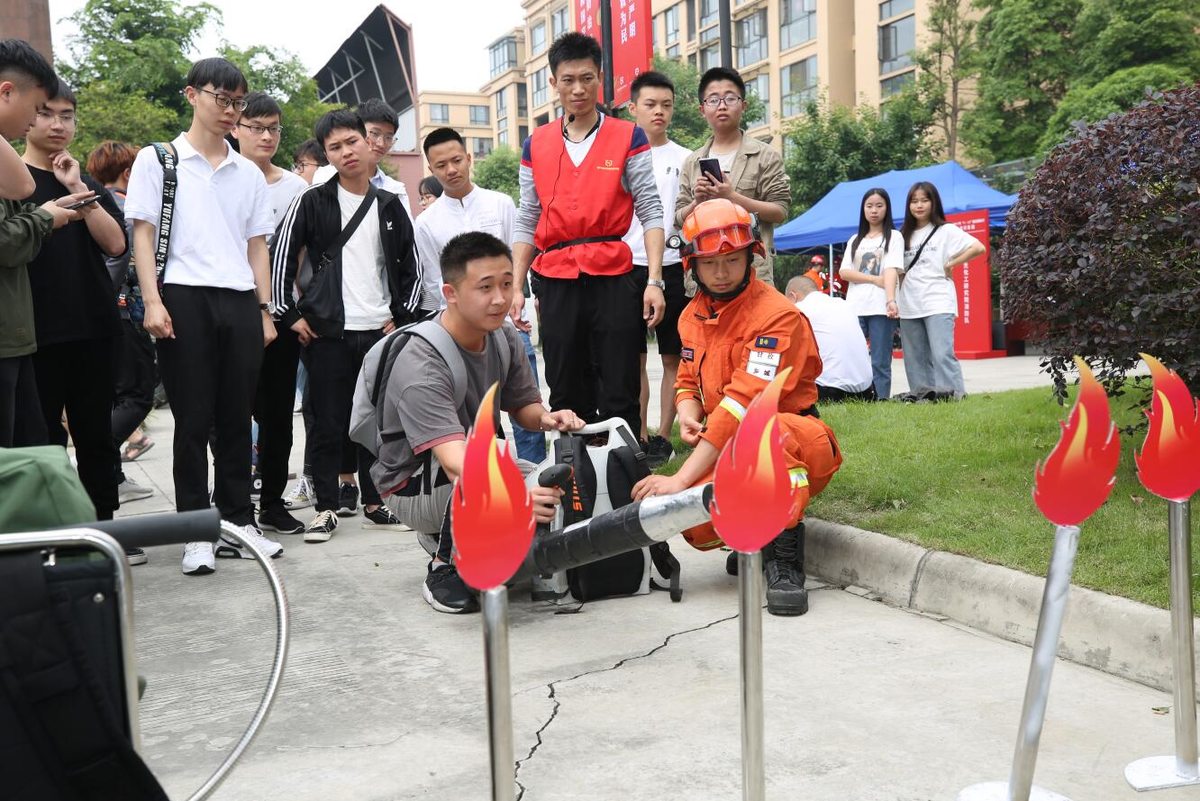 人气最高的当属现场 “消防疏散逃生体验屋”。屋内模拟的是火灾发生时的情景,满是烟雾且黑暗无光。体验者按照工作人员的指导,用衣服捂住口鼻,俯身弯腰,按照安全通道信号灯的指示方向快速通过,从出口逃出。“有了这样一次亲身经历,今后如果真的遇到火灾,至少不会手足无措了。”参与体现的一名大学生告诉记者。