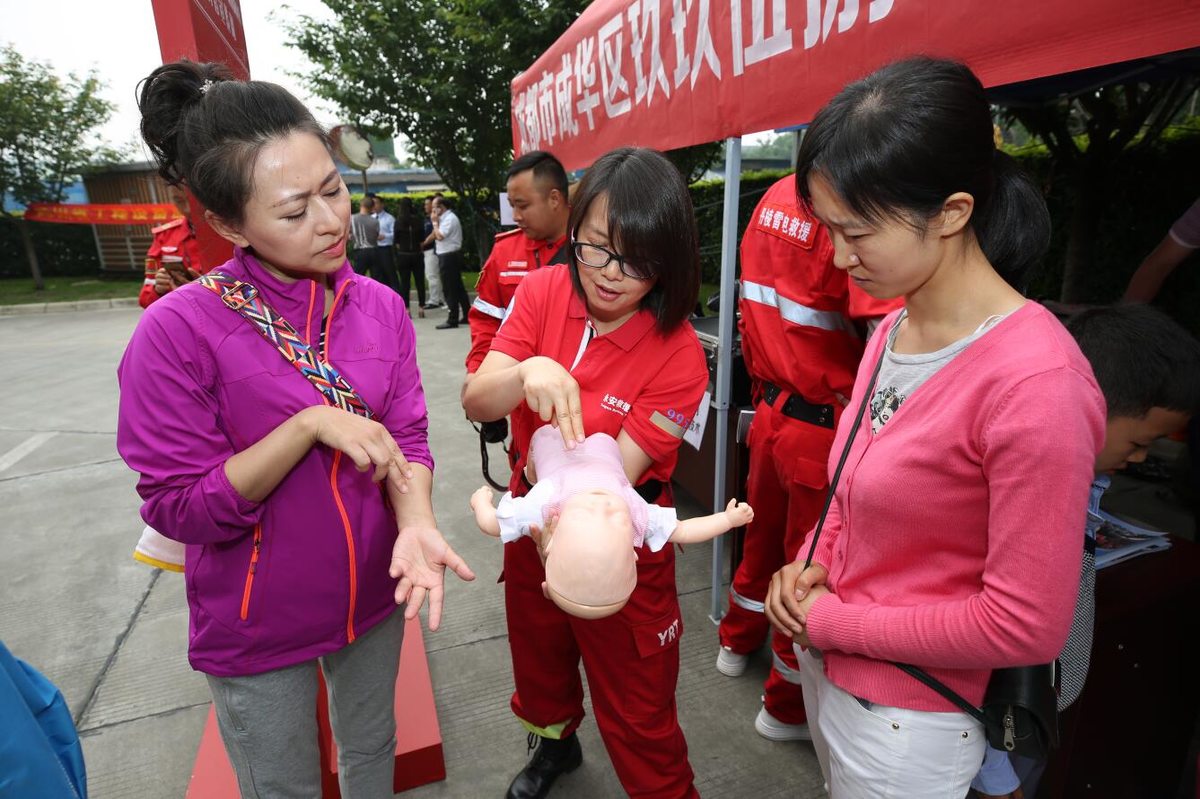 在紧急救护训练营,群众们围绕在工作人员身旁,观看如何进行正确进行心肺复苏。63岁的成都市民刘大爷还亲自实践了两次。“这个活动真的很有意义,教给我们老百姓急救知识,我回去要把这些方法教给我的家人。”刘大爷说。