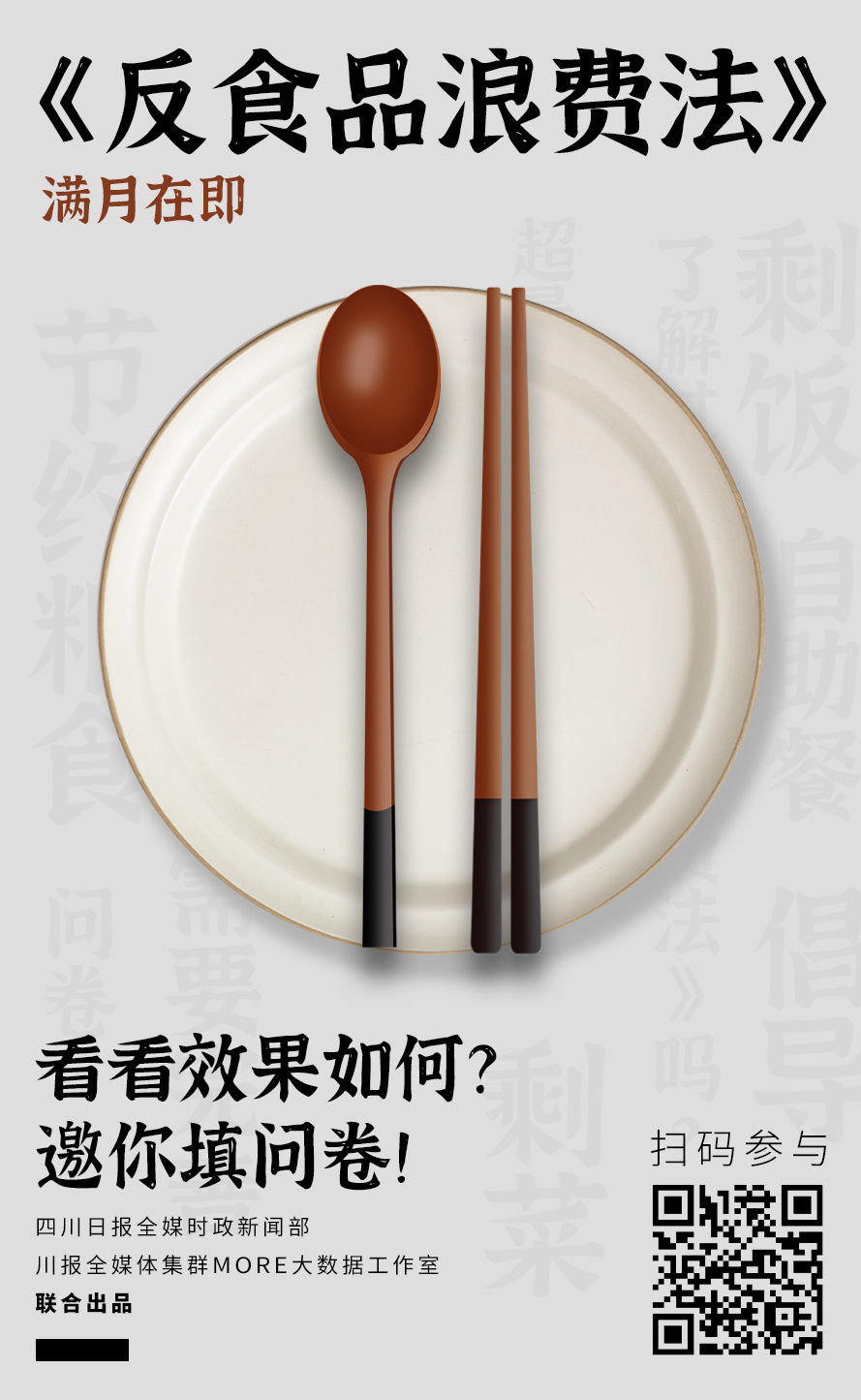 如今《中华人民共和国反食品浪费法》施行即将满月,为了解一个月来《反食品浪费法》的施行情况,更好地履行社会责任,四川日报全媒时政新闻部联合川报全媒体集群MORE大数据工作室面向广大网友开展“反食品浪费现状感知度问卷调研”。