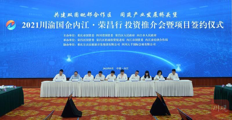 5月13日,“川渝国企内江·荣昌行”活动投资推介会暨项目签约仪式在内江举行。新经济、新基建、现代农业、特色文旅、现代物流等领域的63个项目在会上签约。