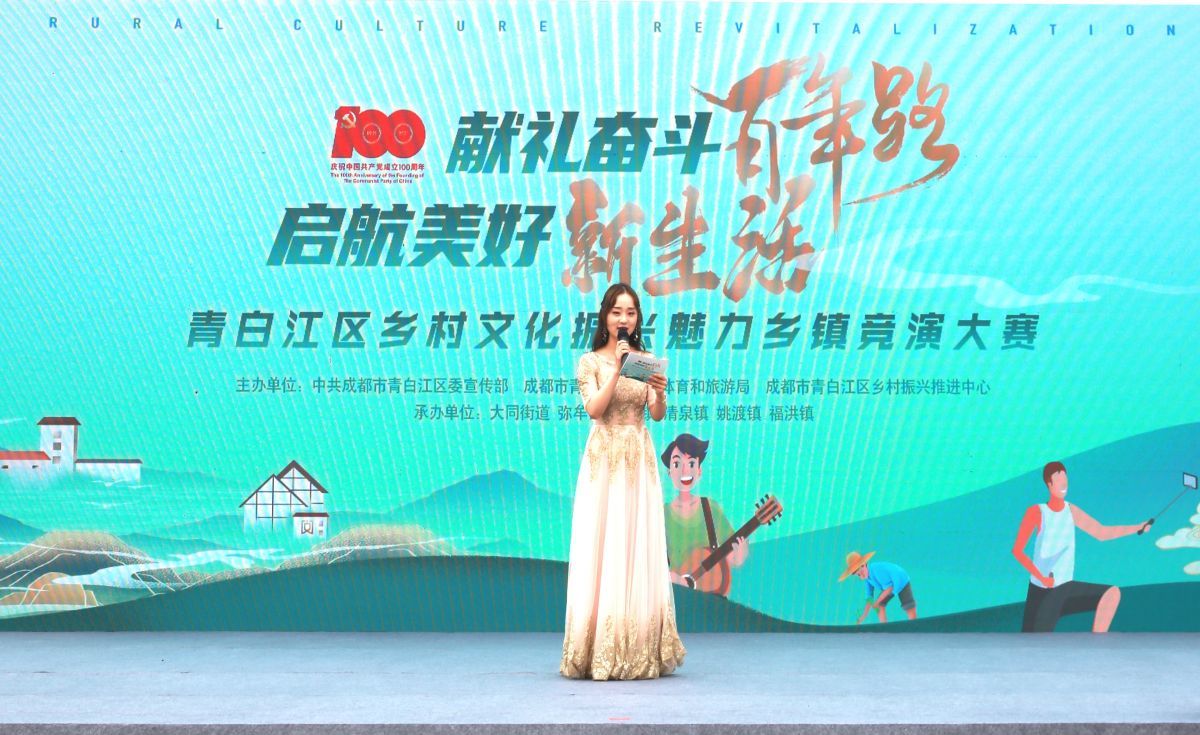 5月26日,青白江区乡村文化振兴魅力乡镇竞演大赛在福洪镇字库社区举行,此次活动以“献礼奋斗百年路 启航美好新生活”为主题,由中共成都市青白江区委宣传部、成都市青白江区文化体育和旅游局、成都市青白江区乡村振兴推进中心主办,以线上、线下相结合的方式进行。