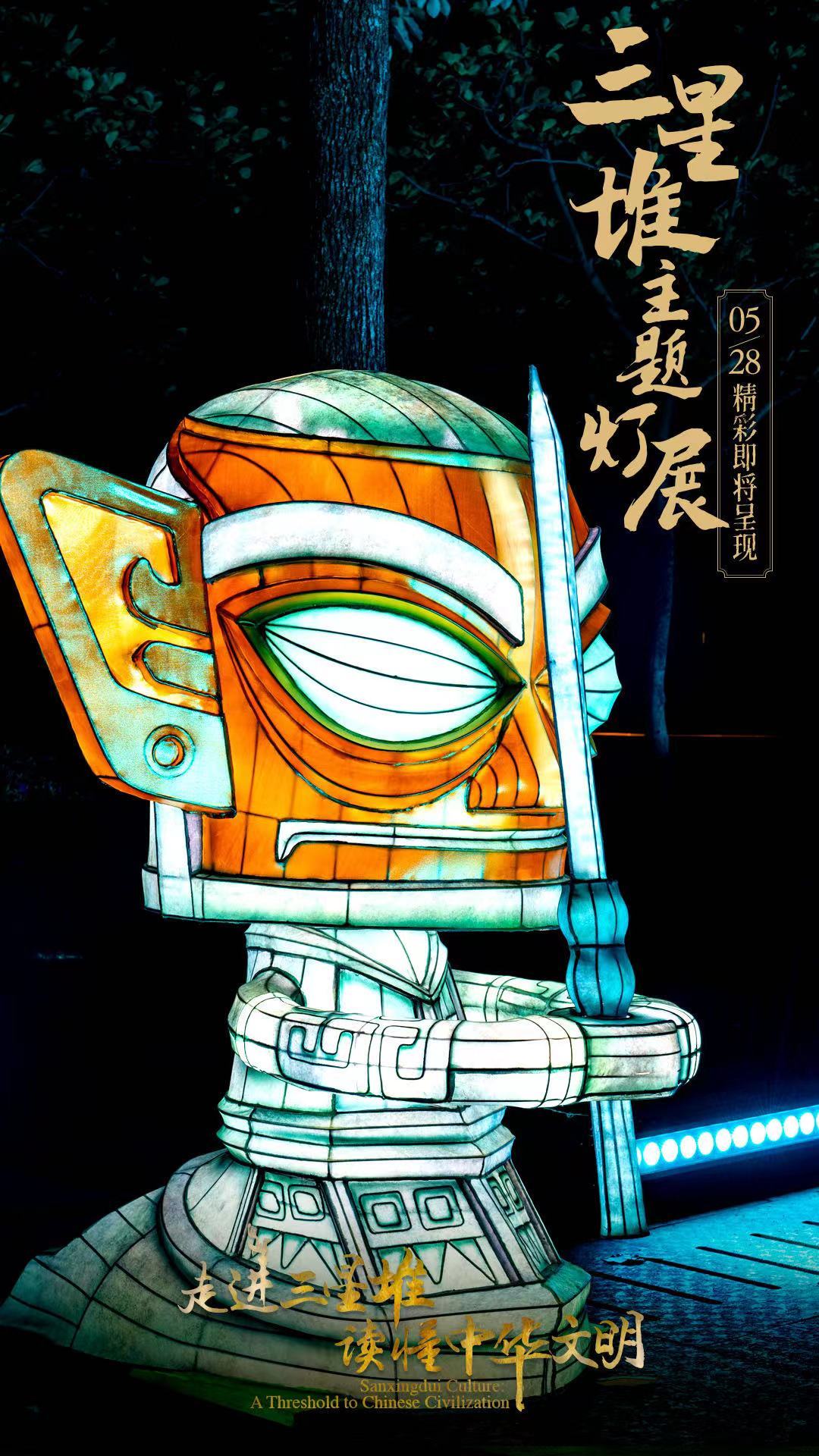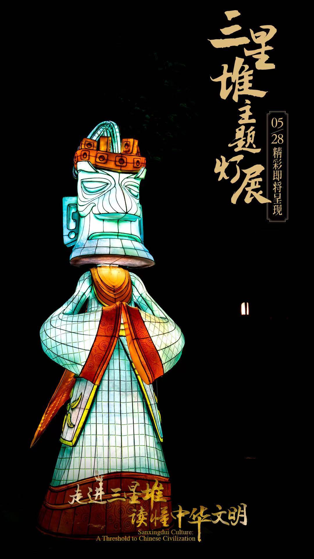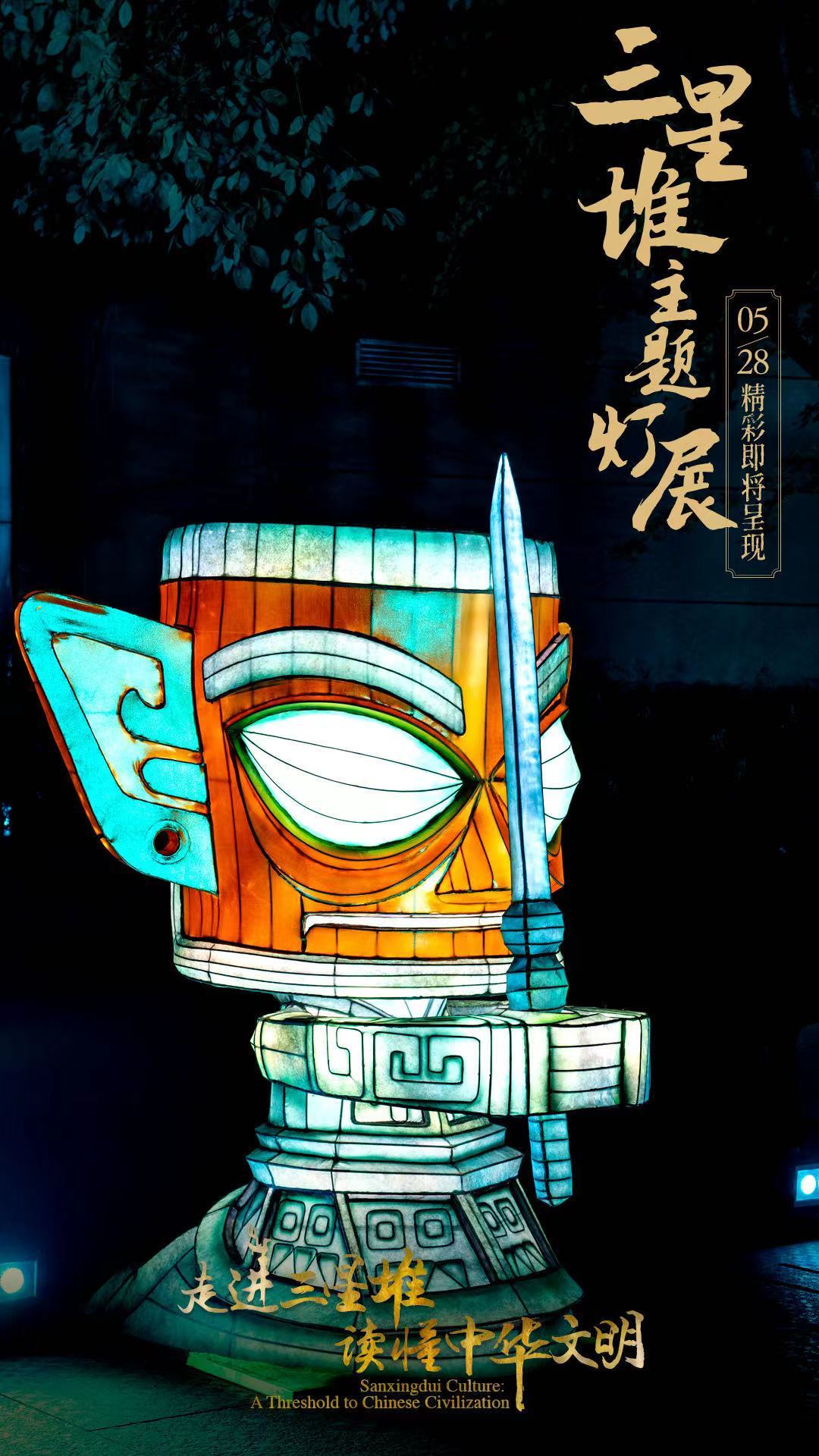 5月28日,国务院新闻办公室、国家文物局、四川省人民政府将在四川省广汉市的三星堆博物馆联合举办“走进三星堆,读懂中华文明”主题活动。由中青旅联科策划、自贡灯贸集团倾力打造的“三星堆奇妙夜之古蜀之门”沉浸式主题灯展,营造出一个如幻如梦的古蜀胜境。
